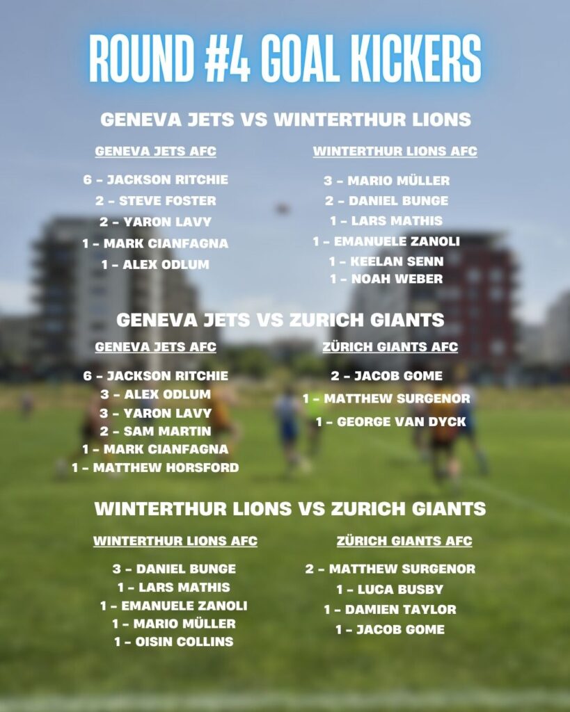 Want to see all the goal kicking excitement in Round #5? Then head down to ZĂŒrichâs sports ground Allmend Brunau, Saturday 06.09.25