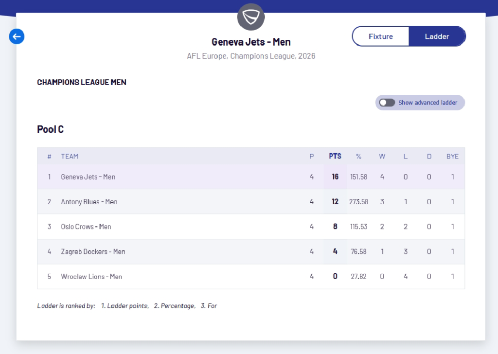 Geneva Jets AFC finish 4th out of 13 teams. It’s the best result a Swiss team has ever had at Champions League.